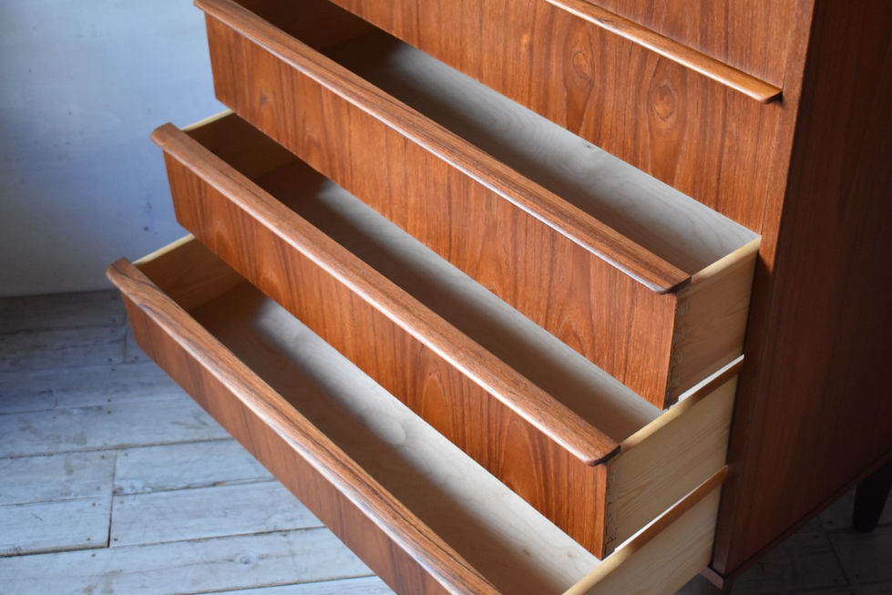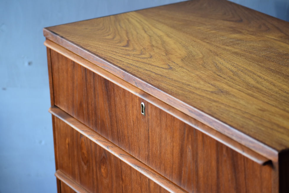 シンプルなデザインながら、天板やフロントにはチーク材の美しい木目を配し、木の風合いを堪能することが出来るデンマーク家具らしい一台。