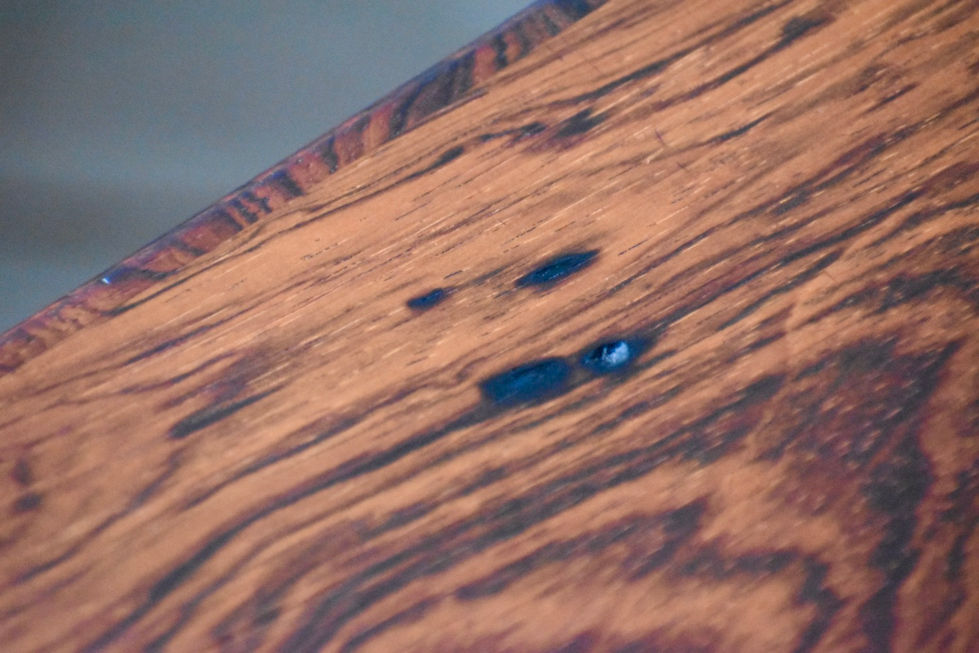 天板の嵌め方にもさり気ない意匠が取り入れられ、そしてそれら全てが杢目豊かな良質なローズウッド材のみで構成されているという。