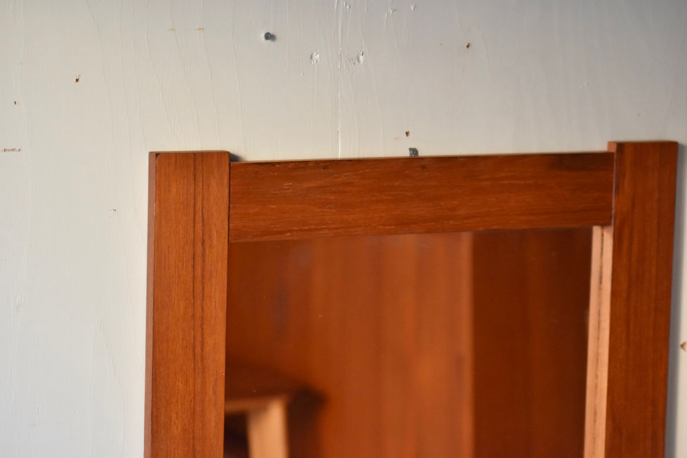 チーク材を使用した木部フレームは、(ミラーを取り外してから)一度古い塗装や汚れを洗浄後丁寧にサンディングを施し、オイル塗装と蜜蝋ワックスのみで再仕上を行いました。