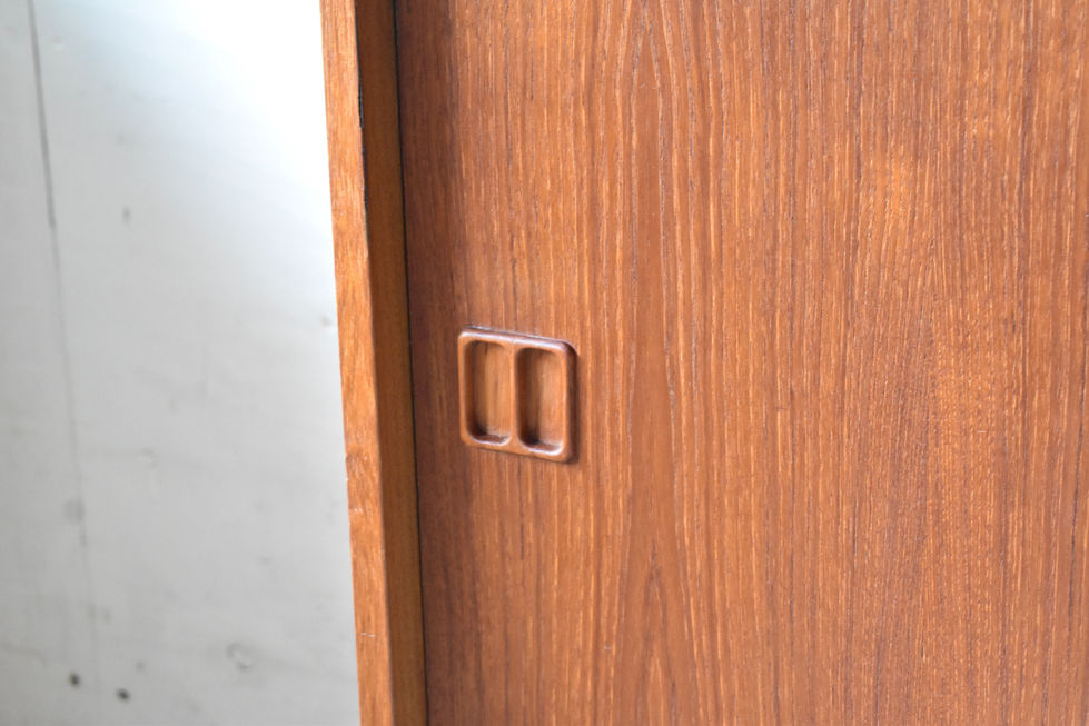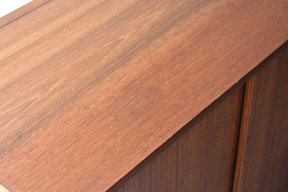 チーク材を使用した本体、扉は一度古い塗装や汚れを洗浄後サンディングを施してからオイル塗装にて再仕上を施しました。