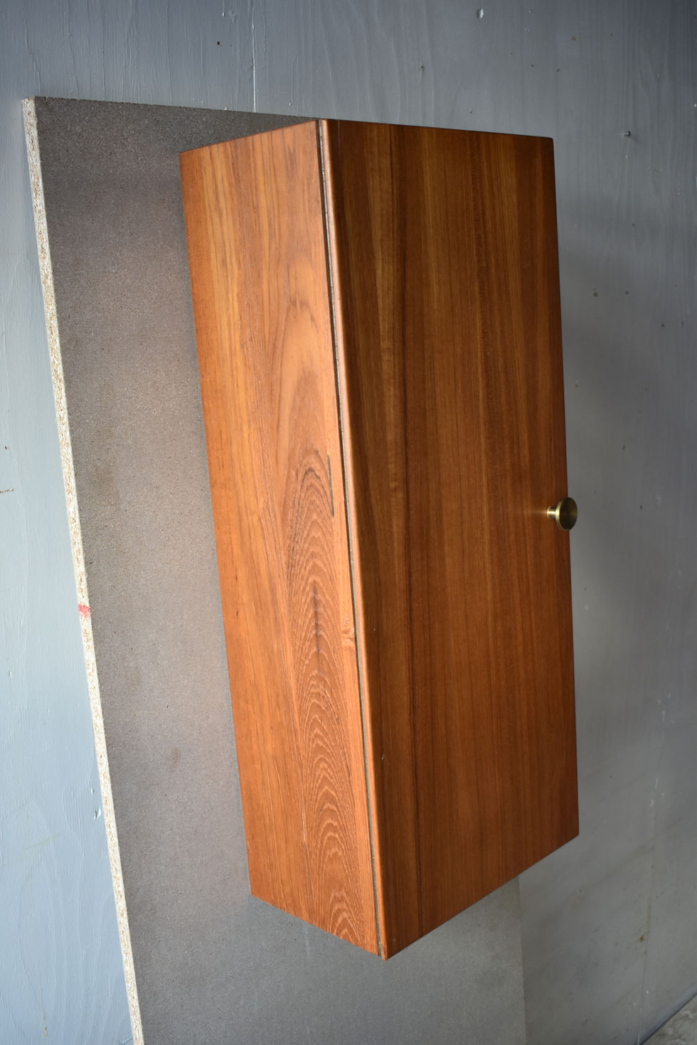 材質はチーク材。扉こそ合板の仕様ですが本体はチーク無垢材を幅方向に接いだ集成材から成ります。