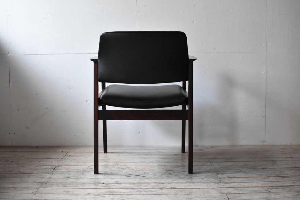 ローズウッド材の重厚な色と質感。視 線が抜ける繊細なシルエット。堂々とした佇まい。直線が目を惹きますがアーム外側には曲線を施すなど細かなバランスへのこだわりを見て取れます。