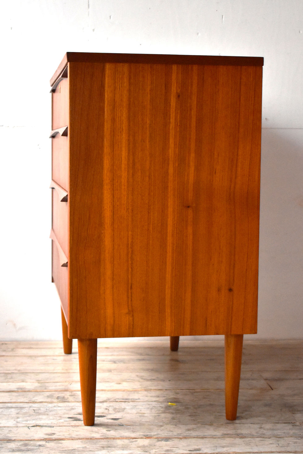抽斗収納では衣類の整理に使用される方も多いですが、折角のヴィンテージ家具であればリビング/ダイニングなど人目につく配置もお勧めです。このサイズ感であれば天板の上を様々にディスプレイを楽しむことも出来ますし、引出しも衣類に限らず身の回りの細々としたモノの整理に重宝いたします。