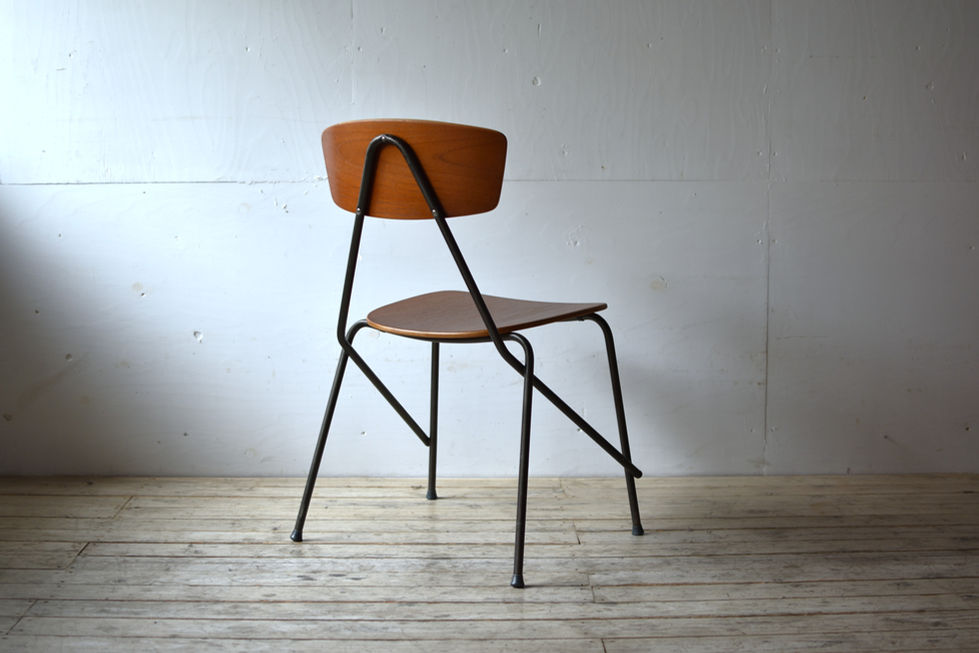 スタンダードなデザインですが前脚と後ろ脚を繋ぐ貫を斜めに走らせた意匠がなかなかユニークです。よく見るとこの貫は背凭れからくの字に曲がってそのまま連なっており、背凭れの収まりと椅子の強度を同時に叶えるデザインとして機能しています。